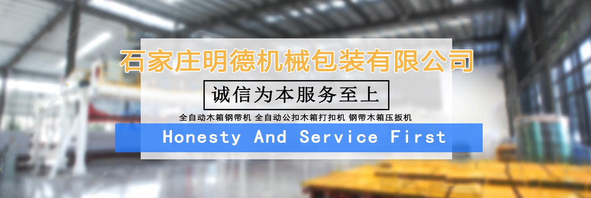 石家莊明德包裝機(jī)械有限公司是國(guó)內(nèi)專(zhuān)業(yè)生產(chǎn)木全自動(dòng)木箱鋼帶機(jī)、半自動(dòng)公母扣木箱打扣機(jī)、全自動(dòng)雙排孔定長(zhǎng)切斷機(jī)、美式托盤(pán)打釘機(jī)械、托盤(pán)刨槽機(jī)、倒角機(jī)、木包裝箱、木托盤(pán)的生產(chǎn)廠家。